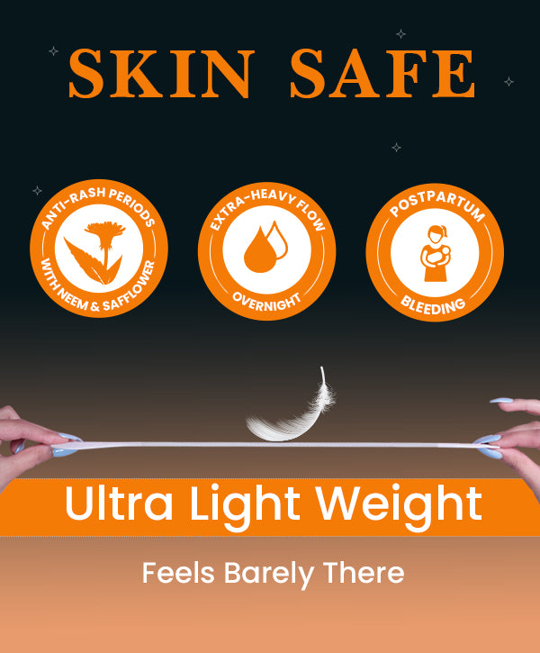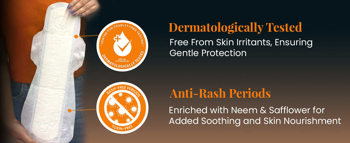 Plus, enriched with natural neem and safflower extracts, these ultra-absorbent XXXL sanitary napkins from everteen help prevent rashes, irritation, and even skin tanning, keeping you fresh, odor-free and comfortable every night. Forget the risk of stains on the clothes or bedsheets.