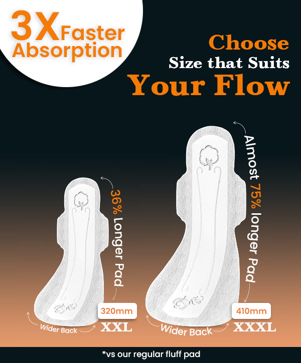everteen XXXL overnight pads are 410mm long, nearly 75% longer than our regular pads. These ultra-thin pads offer maximum coverage and 3X faster absorption compared to regular fluff-based pads.